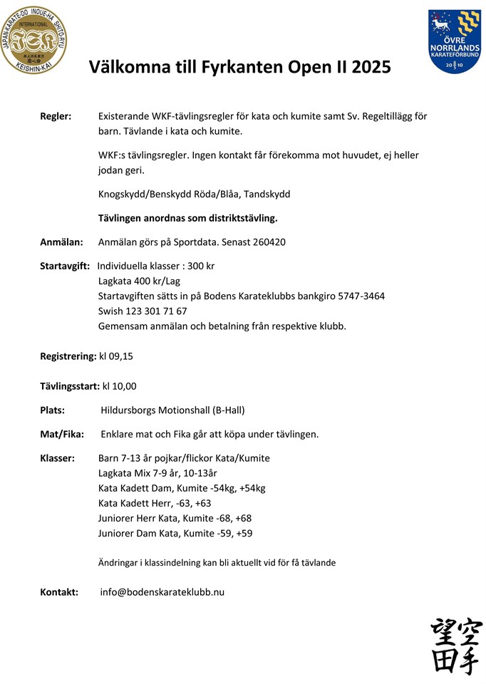 | Kata/kumite seminarium | 26 apr, 12:00 |