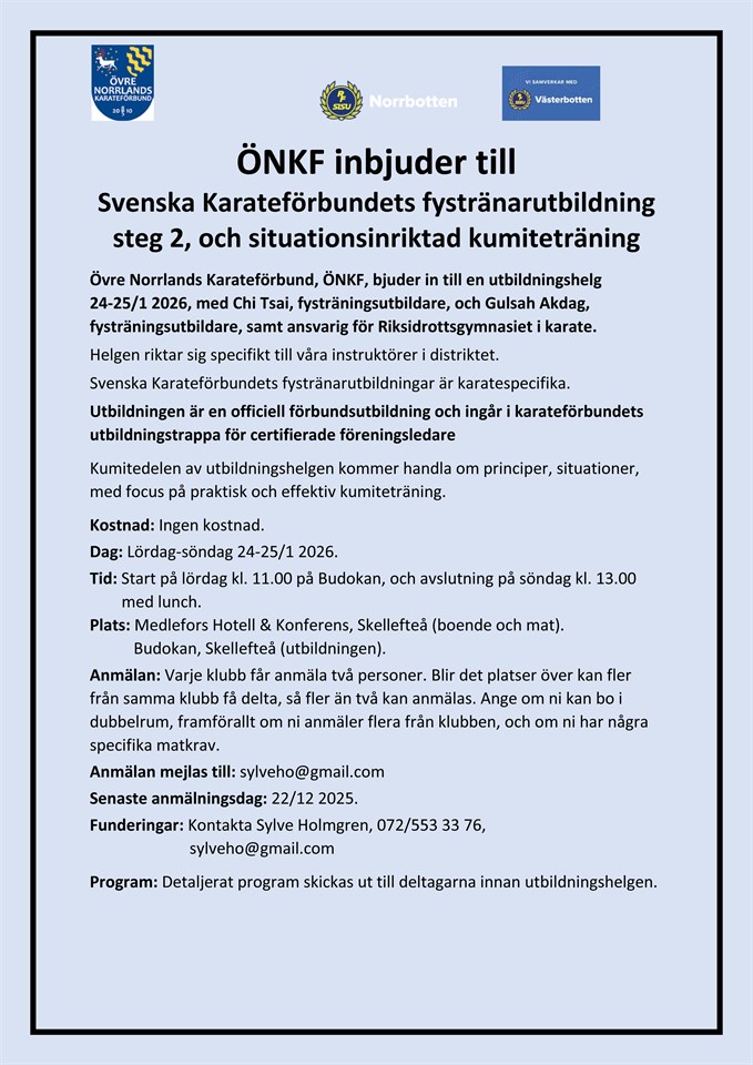 Fyll i din e-postadress för gratis uppdateringar om Övre Norrlands Karateförbund